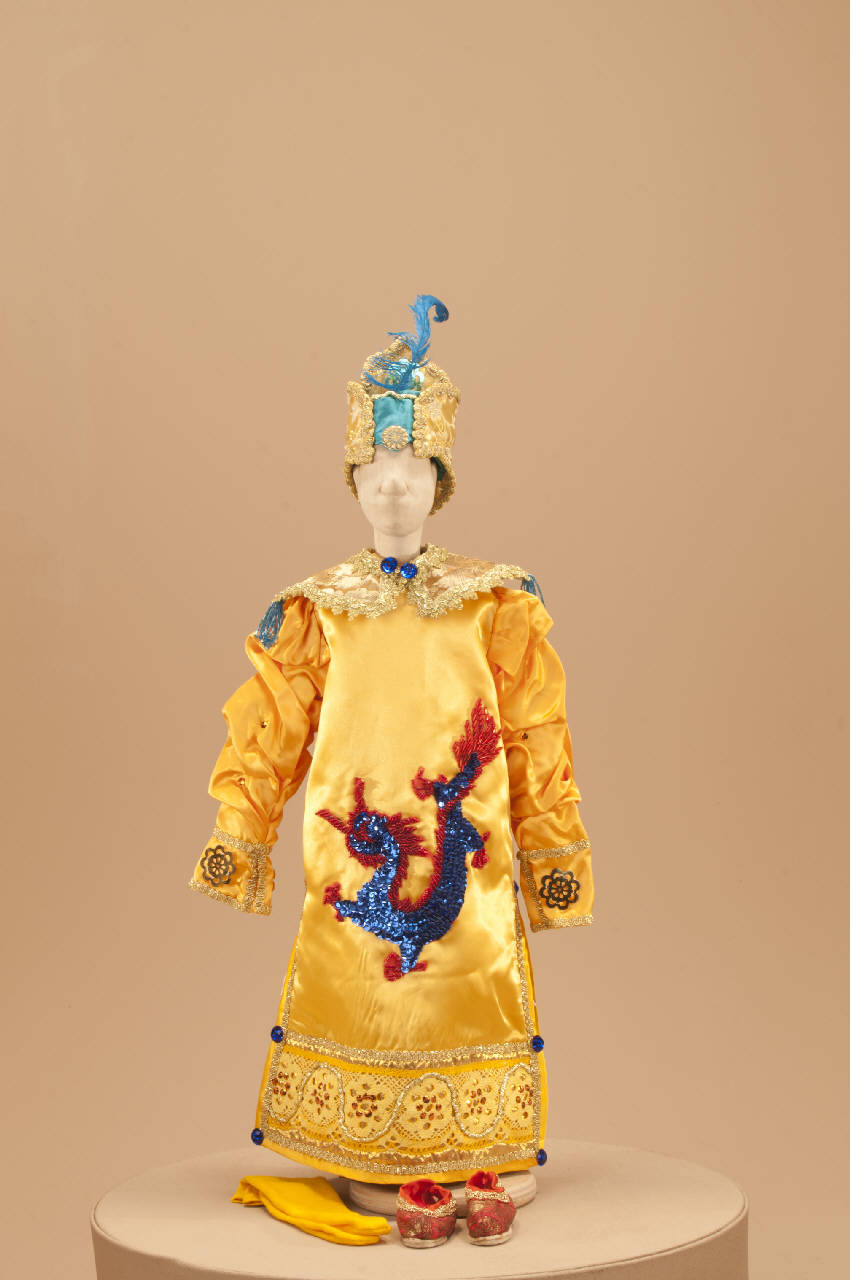 Costume cinese composto da pantaloni, gonna,veste,colletto,calze e scarpe .