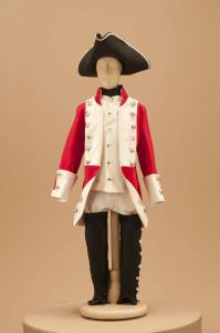 Divisa militare settecentesca, composta da pantaloni, gilet, giacca,colletto e ghette.