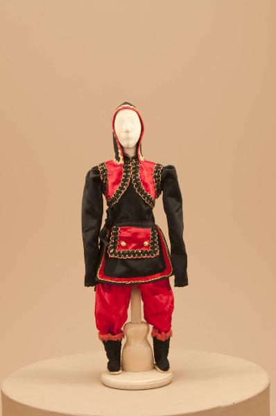 Costume cinese composto da pantaloni, veste, stivaletti e cuffia.
