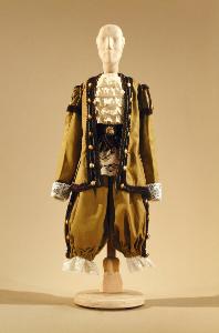 Costume per postiglione del 1600, composto da pantaloni, giacca, camicia, cintura