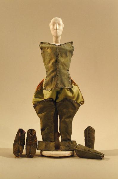 Costume per capitano delle guardie del 1600, composto da pantaloni, giustacuore, paramani, stivali, scarpe