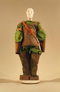 Costume per guardia del 1600, composto da pantaloni, corpino, giustacuore, bandoliera e stivali