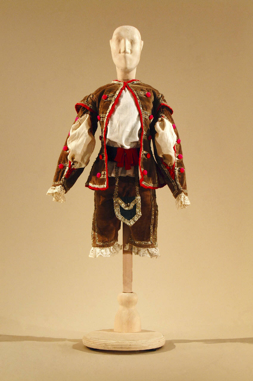 Livrea per usciere del 1600, composta da pantaloni, giacca, camicia, cintura con borsetta