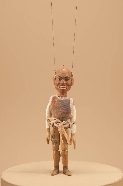 - NOTIZIE STORICO CRITICHE Il volto in cartapesta è stato probabilmente modellato su uno stampo e innestato su una calotta di legno che costituisce la parte posteriore e il collo dell'intera testa. Forchinella alla sommità del capo che serviva per l'innesto del ferro per l'antico movimento con bilancino a pugnetto. Buchi ai piedi che forse servivano per qualche trucco scenico o per qualche abbigliamento particolare. Lo spettacolo I nani burloni è un¿azione fantastica di Carlo II Colla tratto da una leggenda di Natale. La messa in scena si avvale della musica di Felice Camesasca e Andrea Mormina, delle scene di Achille Lualdi e dei costumi ideati dallo stesso Carlo II Colla.\nIl primo allestimento risale al 1921 e fino alla fine degli anni cinquanta, ad ogni dicembre il fremito delle prossime vacanze natalizie invadeva anche il palcoscenico del Teatro Gerolamo di Milano per le tradizionali rappresentazioni dello spettacolo "I nani burloni". Il racconto su cui Carlo II Colla basò la propria versione marionettistica, è tratto dalla tradizione leggendaria del Nord Europa e narra una vicenda ambientata proprio nella Notte di Natale. Ciò dava l'occasione per ricostruire un'atmosfera natalizia ricca di magiche apparizioni e per materializzare così, sul palcoscenico delle marionette, le fantasie di ogni adulto e bambino legate al fascino rituale di questo magico momento dell'anno. Lo spettacolo è un ulteriore esempio di quella straordinaria forma che mescola narrazione, canto, musica, scenografie sontuose e movimenti coreografici di un centinaio di marionette.