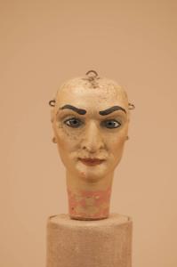 - NOTIZIE STORICO CRITICHE Spilli ai lobi delle orecchie per poter appendere eventuali orecchini. Testa per corpo di taglia piccola tipo quelli delle marionette della miniera dello spettacolo Excelsior. Gancio alla sommità del capo che serviva probabilmente al ferro per l'antico movimento a pugnetto.