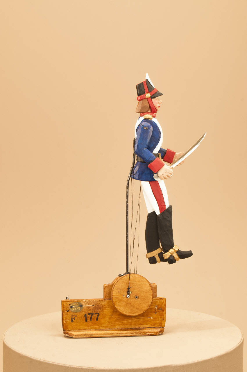 - NOTIZIE STORICO CRITICHE Questa marionetta veniva usata nello spettacolo come giocattolo che prendeva vita. Per questo ha caratteristiche differenti dalle marionette tradizionali della Compagnia Carlo Colla e Figli Lo spettacolo "La boîte à joujoux" è stato allestito nel 2012 per l¿Accademia Chigiana e rappresentato, unitamente a "Children¿s corner" e "L¿aprés midi d¿un faune", in un programma dedicato a Debussy. Costumi di Eugenio Monti Colla e Cecilia Di Marco. Scenografie e sculture di Franco Citterio.