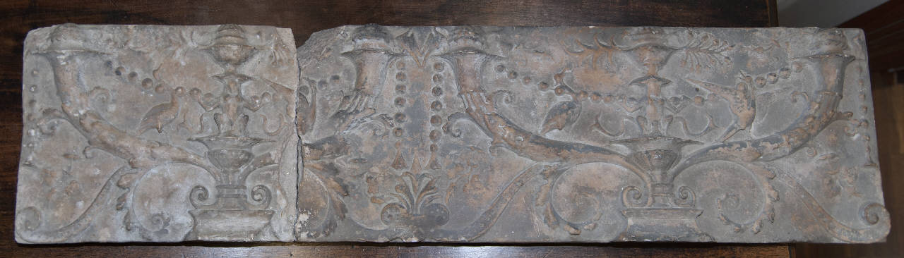 - NOTIZIE STORICO CRITICHE Rinvenuto nel 2008, questo fregio ornamentale con motivi decorativi a candelabra è databile al XVI secolo. Potrebbe provenire da un'ignota architettura rinascimentale. Non si esclude la possibilità di un suo utilizzo nell'ambito della scuola dell'Accademia Carrara nelle esercitazioni di ornato.