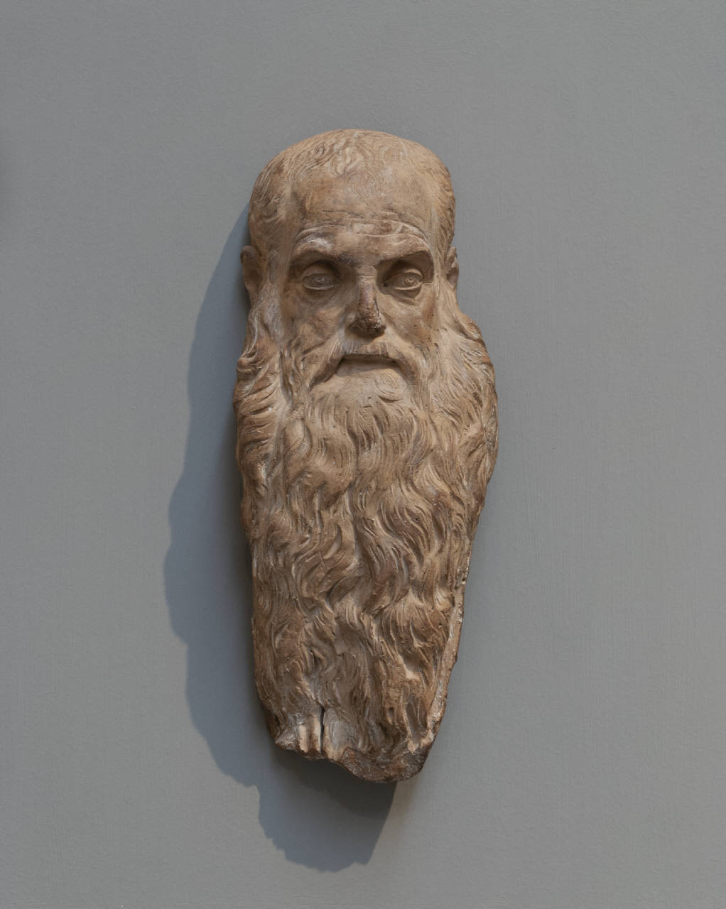 - NOTIZIE STORICO CRITICHE Acquistata da F. Zeri dalla raccolta Moratilla di Parigi, questa piccola scultura raffigura il volto severo, incorniciato da una folta e lunga barba, del medico e naturalista veneziano Apollonio Massa, morto nel 1590. Con ogni probabilità si tratta del bozzetto preparatorio per il busto, oggi al Seminario Arcivescovile di Venezia ma proveniente dalla chiesa delle Convertite alla Giudecca, eseguito nel 1587 da Alessandro Vittoria, il maggiore scultore veneziano del secondo Cinquecento. Non sono invece documentate relazioni dirette con il busto in terracotta al Metropolitan Museum di New York, forse una derivazione dell'esemplare oggi al Seminario, e con il busto in marmo dell'Ateneo Veneto. La terracotta in Carrara mostra, non solo l'originale scelta dello scultore di limitarsi alla testa, ma anche e soprattutto la grande abilità nel tracciare in modo deciso i tratti fisionomici del medico veneziano. Le tracce di vernice bianca, che probabilmente dovevano servire a simulare l'effetto visivo di una realizzazione in marmo, fanno pensare ad un primo pensiero realizzato dal vero successivamente passato dal Vittoria alla sua bottega per la versione in terracotta comprensiva di manto e basetta modanata.
