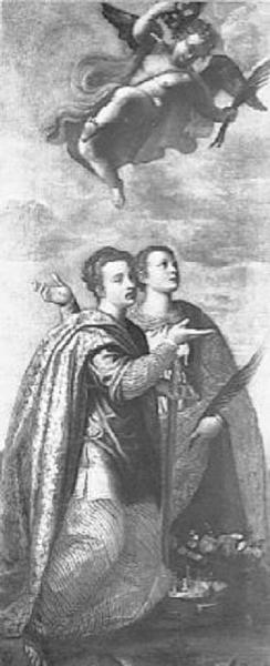 - NOTIZIE STORICO CRITICHE La sante sono già state identificate rispettivamente con Agata e Agnese (1976, Inventario dei dipinti): Agata è certamente la santa in piedi con i seni in mano, mentre quella inginocchiata con corona e freccia nel petto va identificata con Orsola (Silvia Colombo, 1999). Il dipinto, in pendant con "Santa Caterina d'Alessandria e Santa Dorotea", proviene dal Monastero benedettino di San Paolo d'Argon (G. Marenzi, 1824).