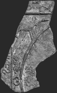 - NOTIZIE STORICO CRITICHE Il retro del frammento superiore è scalpellato, mentre l¿altro è levigato.