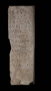 Lastra rettangolare con iscrizione commemorativa di Angela, badessa del convento di Santa Radegonda, reimpiego della lastra inv. 459