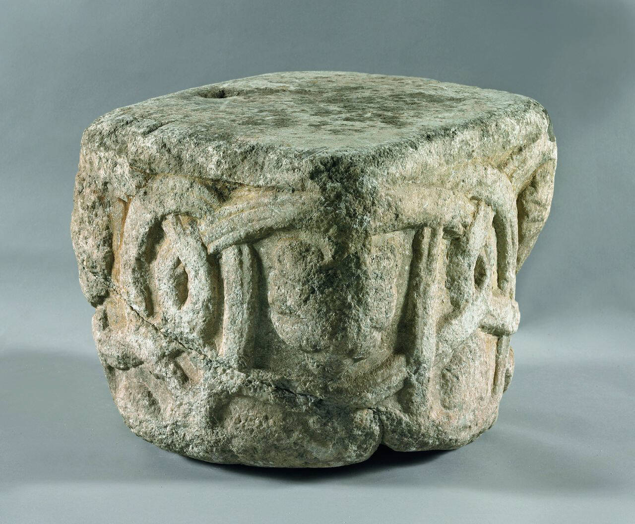 capitello cubico decorati a intrecci di nastri