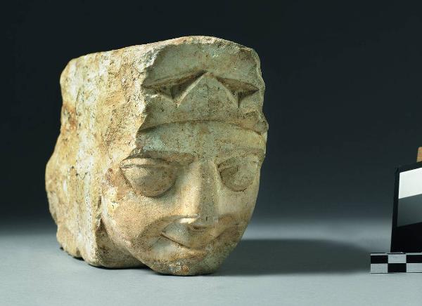 Mensola con testa sorridente cinta da coroncina