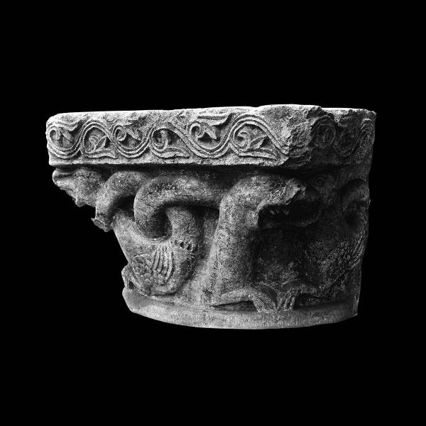 Capitello di semicolonna con draghi contrapposti aventi le code intrecciate