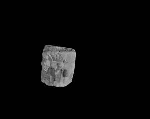 Capitellino angolare con alcune foglie lisce che si elevano dal collarino e ripiegano le punte triangolari con nervature. Presente una voluta d'angolo.