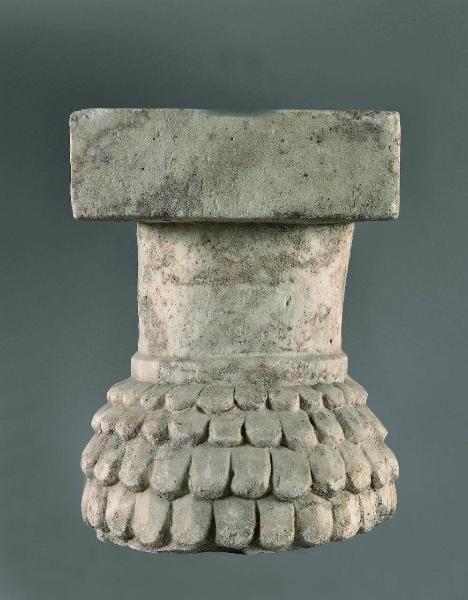 All'identificazione precedente com "base, forse di sedile, a foggia di carciofo", di recente è stata proposta l'identificazione con una pigna. Funzione e datazione restano da approfondire