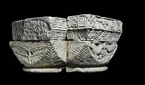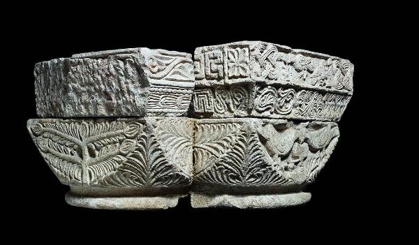Capitello di pilastro; sulla fronte: albero; alla base dell'echino, due foglie di palma