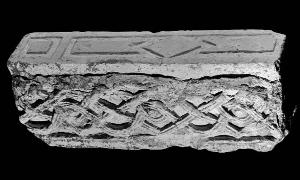 Cornice frammentaria decorata su un lato ad intrecci, reimpiegata