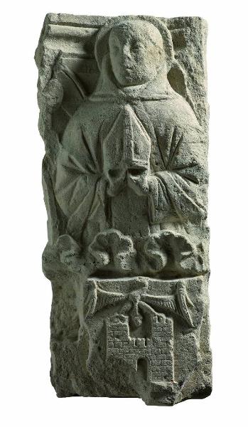 Santo vescovo sovrastante stemma dei Landriani?