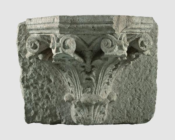 Peduccio con abaco pentagonale, corpo a due ordini di foglie d'acanto