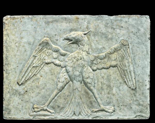 Lastra rettangolare raffigurante un'aquila ad ali spiegate.