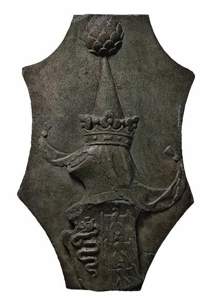 - NOTIZIE STORICO CRITICHE Lo stemma ha un calco (inv. 890 bis) in deposito dal 1978 presso il Palazzo di Giustizia di Milano (V piano, armadio).\nForma: 2001, ICSA, dossier calchi, 75