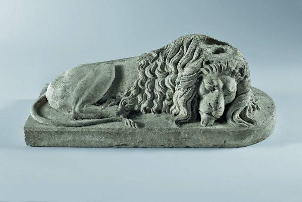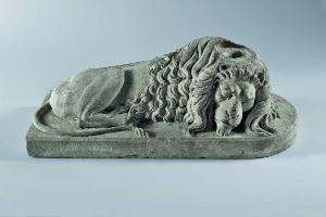 Leone accosciato su base mistilinea.