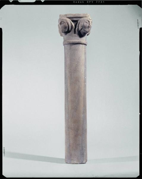 Colonnina e capitello con quattro protomi umane