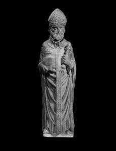 Sant'Ambrogio reggente lo staffile con la mano destra e un libro con la sinistra