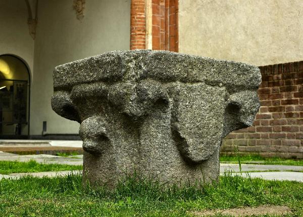 - NOTIZIE STORICO CRITICHE Capitello con tre scudi non lavorati e sul quarto lato foglia a pinta ricurva [scheda datt.]