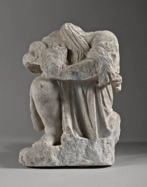 - NOTIZIE STORICO CRITICHE Figura acefala inginocchiata con strumento musicale (?).\n[scheda inventariale dattiloscritta]