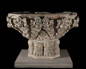 Vasca decorata con motivi vegetali. Base con zampe unghiate. L'opera è composta da "due elementi non coerenti"