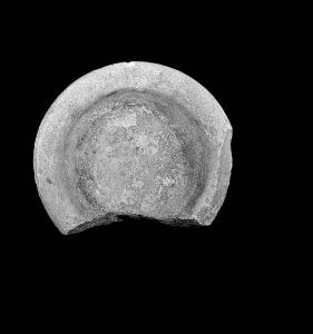 Acquasantiera con bordo arrotondato, incompleta. (Prov. come sopra?) [e cioè] Dalla Chiesa dei Carmelitani?