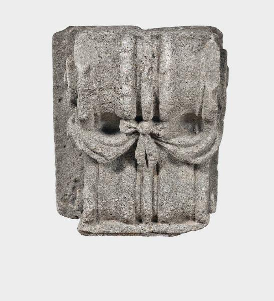 Mensola con voluta scanalata e festone fissato da un fiocco.