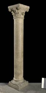 - NOTIZIE STORICO CRITICHE Capitello a foglie verticellate con ingrossamento e a costolature aggraziate agli spigoli e nei campi. Nell'un capitello (1055) in un campo la Madonna col bambino; nell'altro (1063) San Giuseppe col giglio. Base con quattro foglie ricurve scendenti sul plinto.