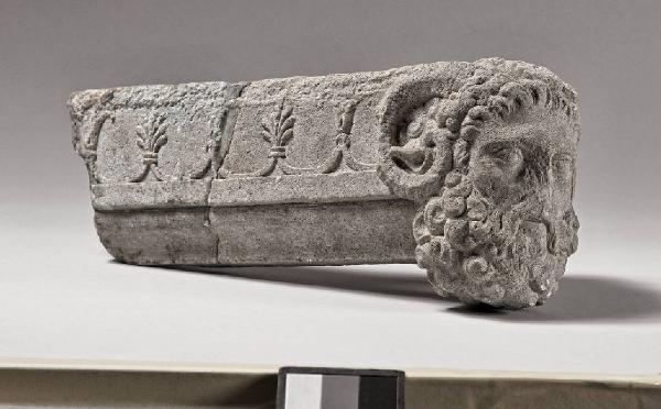 Ccornice con testa di fauno frammentaria