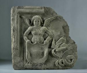 San Giorgio e il drago con stemma Bottigella sostenuto da un angelo