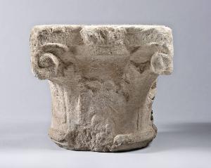 Capitello a foglie d'acanto, piccola palmetta nell'echino; semi rosetta nell'abaco; alquanto corroso, elemento per colonnina