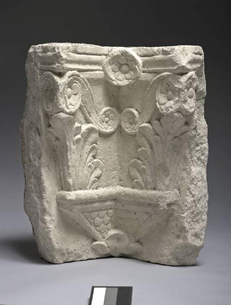 Peduccio angolare; palmette, volute con rosette; rosetta al centro dell'abaco.