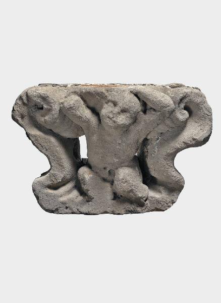 Satiro accovacciato tra due volute