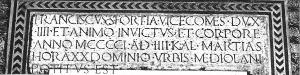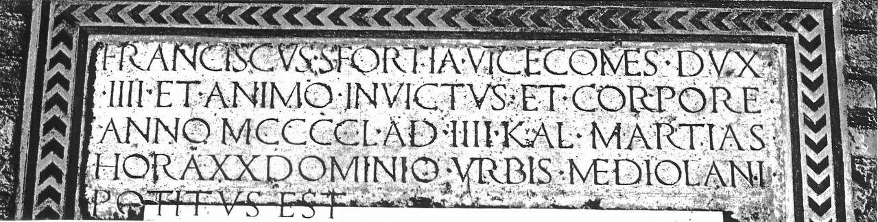 Iscrizione commemorativa dell'ingresso di Francesco I Sforza