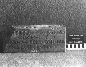 Mattone con iscrizione attestante la cacciata da parte di un re inglese di un fuoriuscito accolto da famiglia cremasca