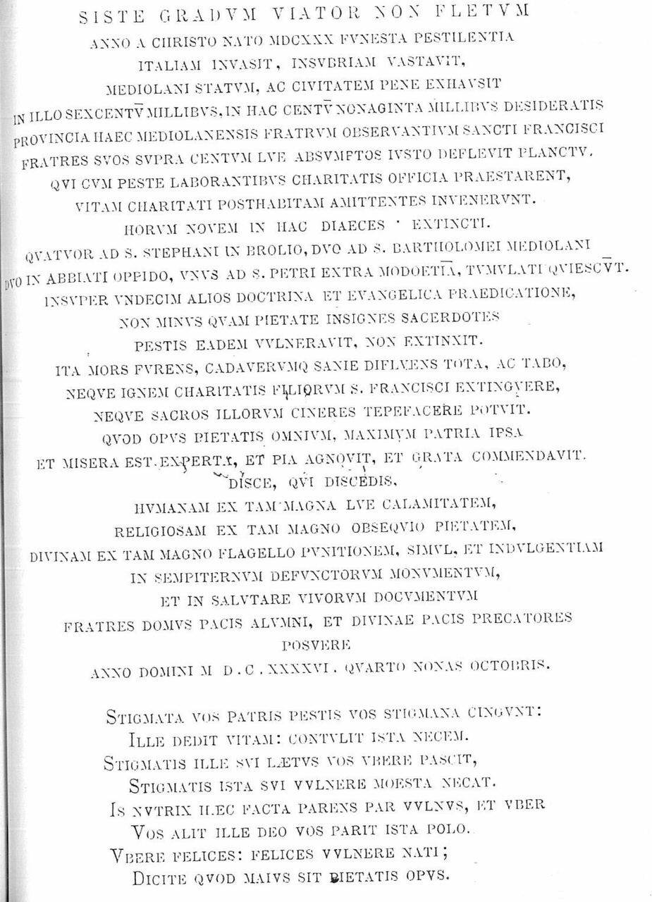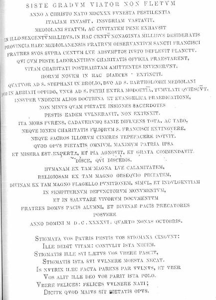 Targa commemorativa dei Minori osservanti sulla peste del 1630