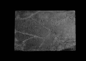 Lastra rettangolare con iscrizione funebre dedicata a Vibia Innocenza dal marito Valerio Faustino (Valerius Faustinianus)