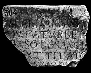 Lastra frammentaria con iscrizione mutila relativa ad Adalmannus (Adalmanno o Alemanno)