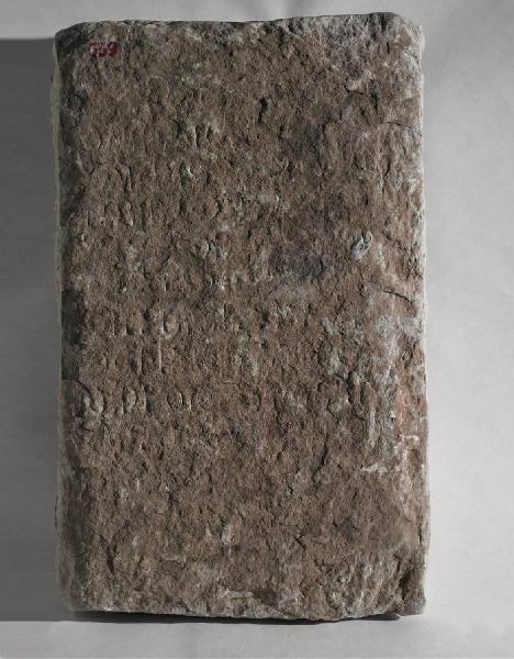 Lastra con iscrizione illeggibile. Assai problematica la lettura dei pochi caratteri ancora percebilili