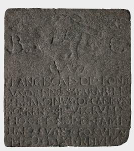 Lastra tombale con iscrizione dei coniugi Francesca da Ponte e Bernardino de Cani