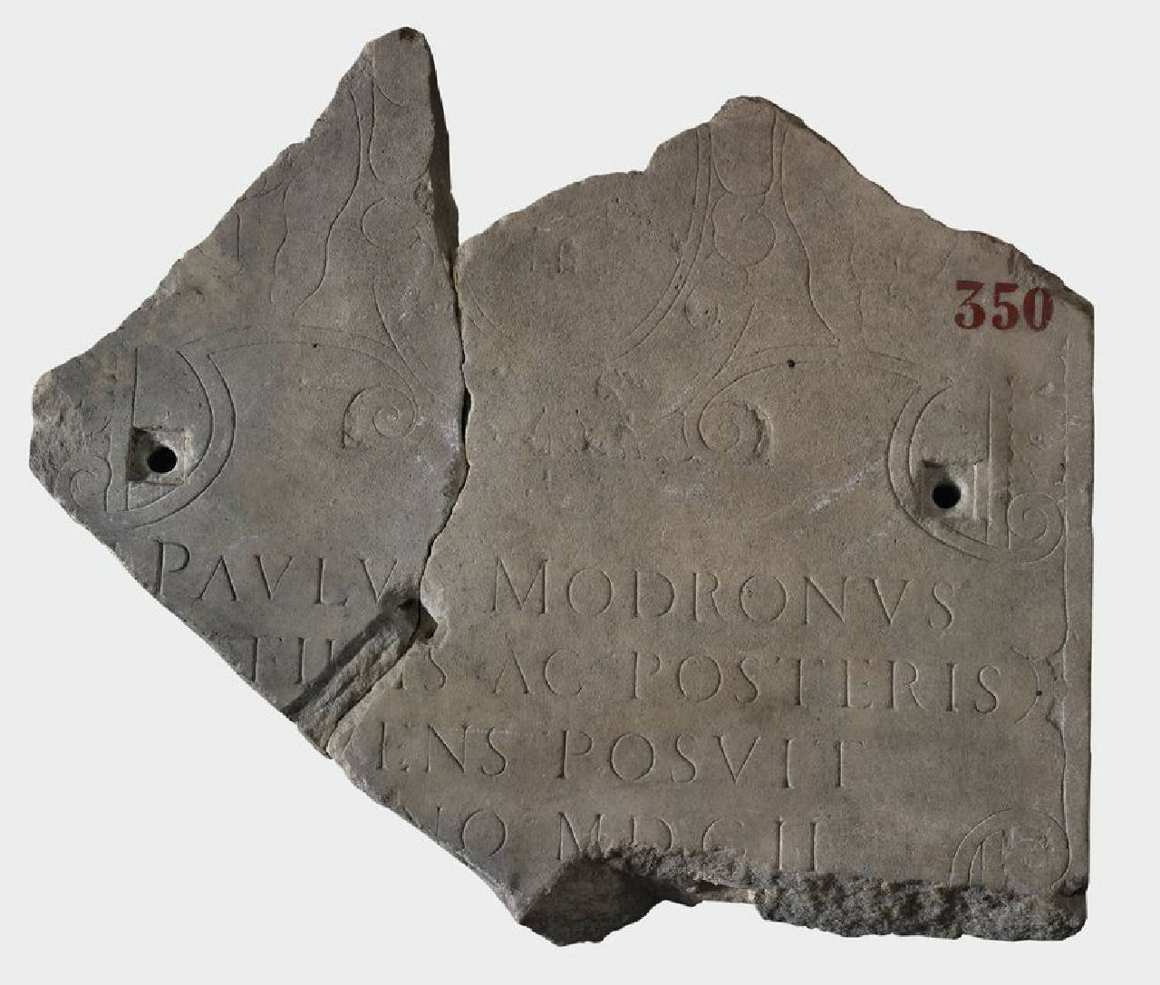 Lastra tombale con iscrizione della famiglia Modroni (Modrone)