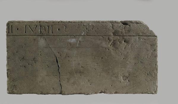 Hic iacet, II iunii le sole lettere identificate; manca il riconoscimento dello stemma