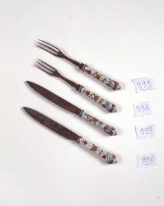 - NOTIZIE STORICO CRITICHE Il pezzo è parte di un assortimenento composto da piatti vari, una tazzina e due zuppiere con decoro della famiglia Imari. Posate con manici in maiolica erano consueti nei servizi da tavola milanesi della fine del Settecento.